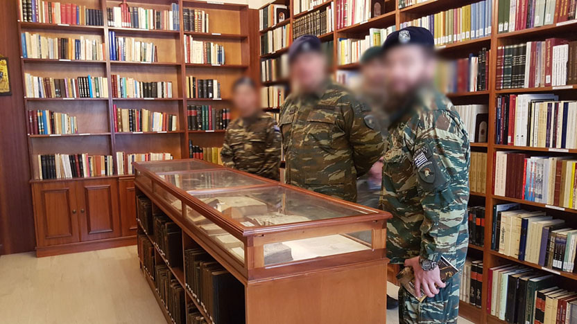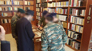 Μας έδωσε την ευχή του και τις όμορφες συμβουλές του και μας έγινε και μια μικρή ξενάγηση στο χώρο της βιβλιοθήκης που διατηρεί η μόνη.