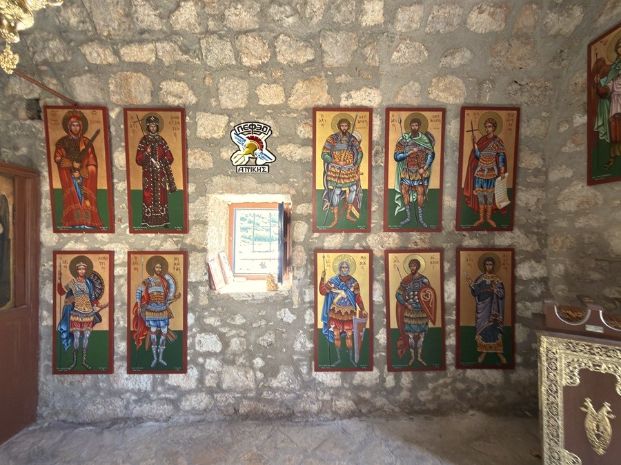 Η Λ.ΕΦ.Ε.Δ. Αττικής εκφράζει επίσης τη βαθύτατη ευγνωμοσύνη της προς την αγιογράφο Αικατερίνη Χαραλαμποπούλου, η οποία εργάστηκε ακούραστα, με βαθιά πίστη, εθελοντικό φρόνημα και αληθινή αγάπη για την Πατρίδα. Το έργο της ήταν μια πράξη ψυχής, μια έμπρακτη μαρτυρία ότι η Πίστη και το Χρέος μπορούν να μεταμορφωθούν σε δημιουργία ιερής αξίας. Η συμβολή της υπήρξε καθοριστική και την ευχαριστούμε θερμά.