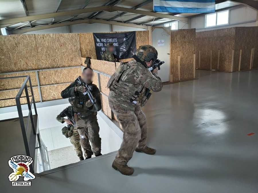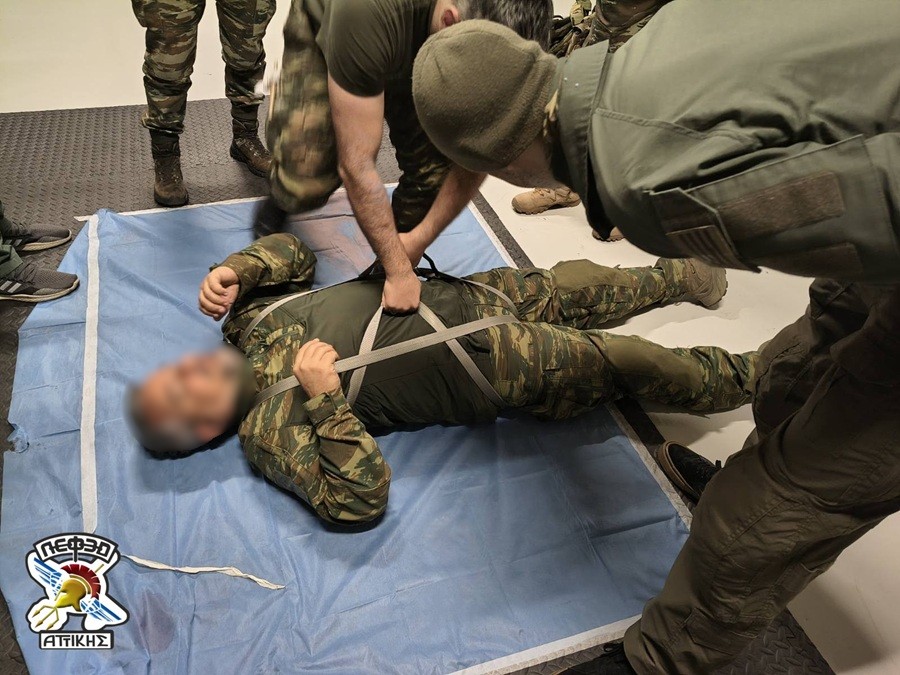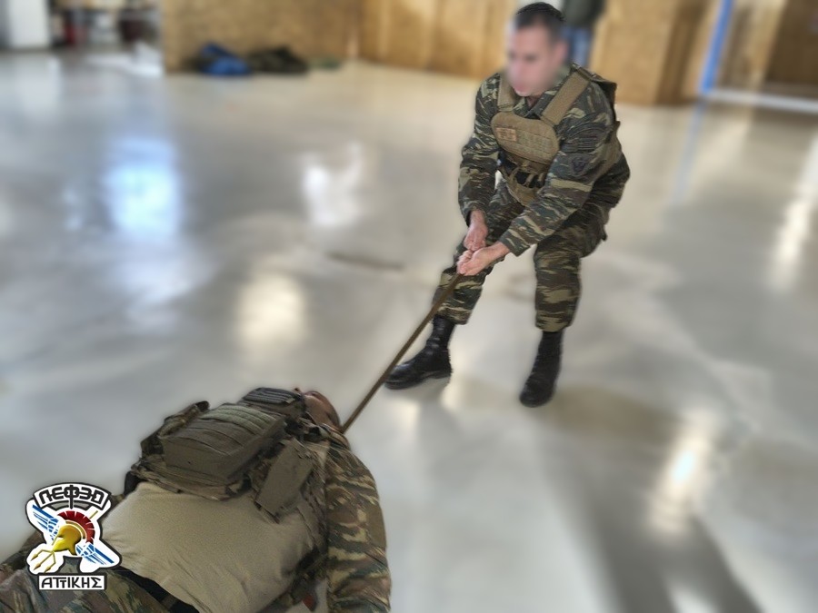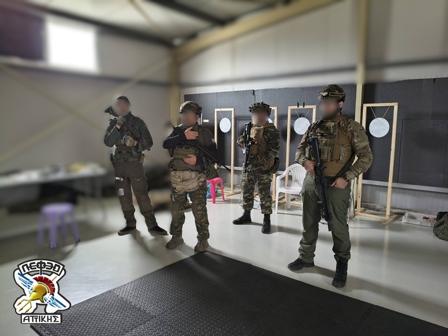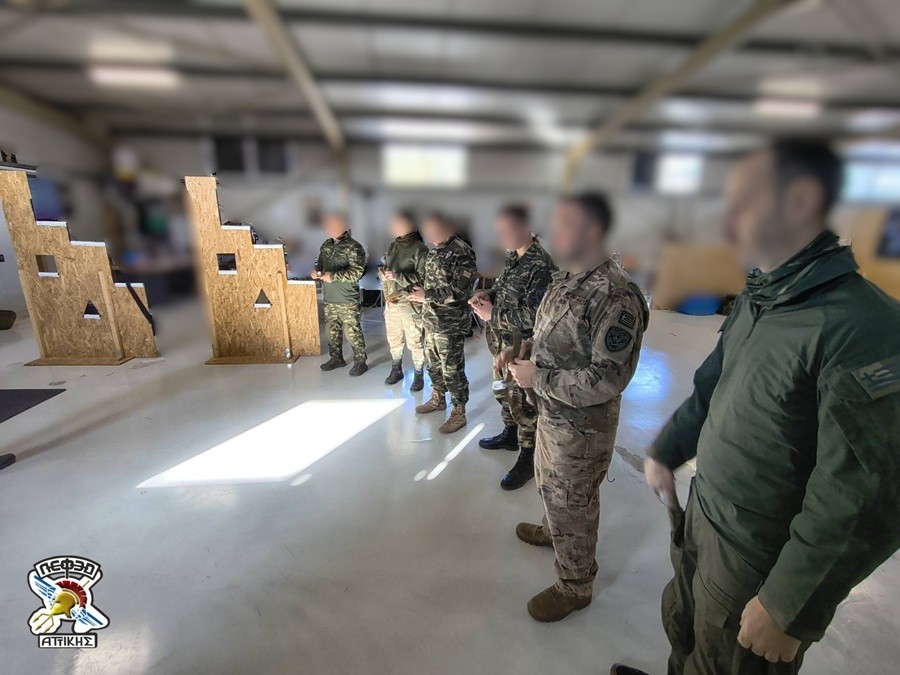 ΣΗΜΕΙΩΣΗ: Για τις ανάγκες προσομοίωσης της εκπαίδευσης, χρησιμοποιήθηκαν ομοιώματα τύπου airsoft και όλα τα μέλη, έφεραν όλα τα απαραίτητα Μέσα Ατομικής Προστασίας (γυαλιά, μάσκα, γάντια).