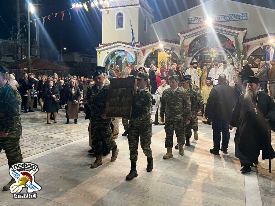 Ύστερα από πρόσκληση του π. Γεώργιου Θεοδωρόπουλου – Πρόεδρο του Εκκλησιαστικού Συμβουλίου του Ιερού Ναού Αγίου Τρύφωνος Καματερού, η Λέσχη Εφέδρων Ενόπλων Δυνάμεων (Λ.ΕΦ.Ε.Δ.) Αττικής συμμετείχε στον εορτασμό του Αγίου Τρύφωνος με τιμητικό άγημα, το Σάββατο 31 Ιανουαρίου 2026.