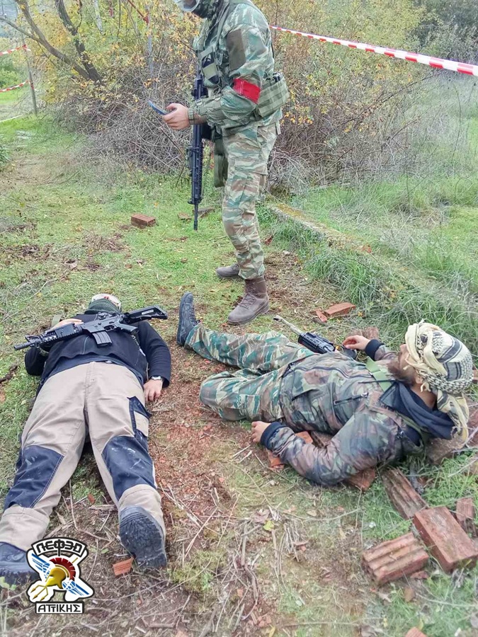 ΣΗΜΕΙΩΣΗ: Για τις ανάγκες προσομοίωσης της άσκησης, χρησιμοποιήθηκαν ομοιώματα τύπου airsoft και όλα τα μέλη μας, έφεραν όλα τα απαραίτητα Μέσα Ατομικής Προστασίας (γυαλιά, μάσκα, γάντια).