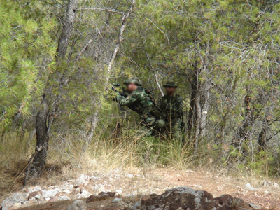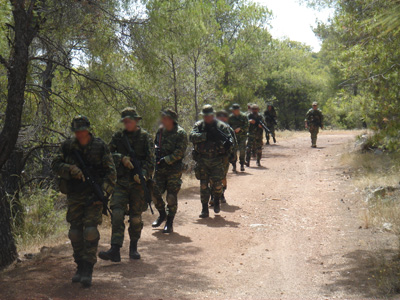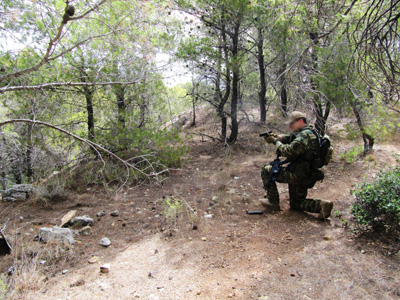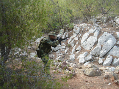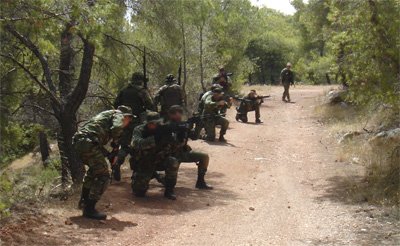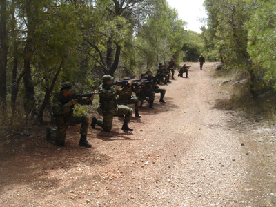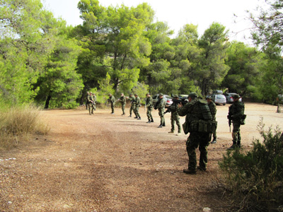 Εν συνεχεία σε στίβο τακτικής κίνησης- σκόπευσης, τα μέλη κατά μονάδα και ανά ζεύγη έθεσαν σε εφαρμογή όλα όσα διδάχτηκαν στην πράξη. Η πίεση και η ζέστη έκαναν την διέλευση δύσκολη.
