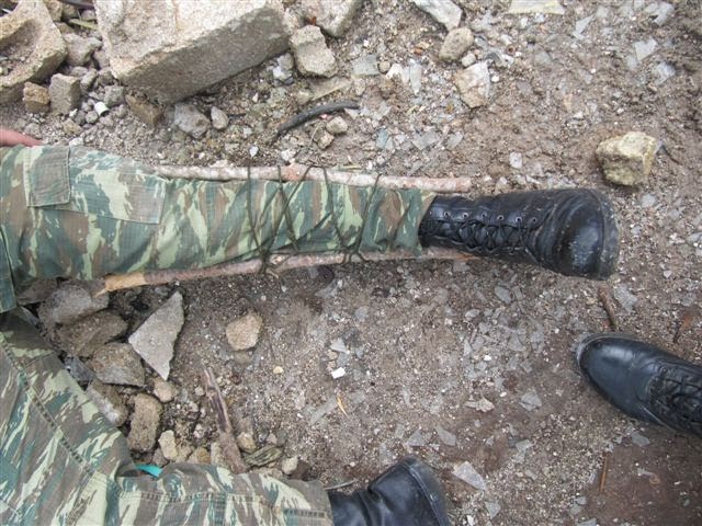 Ακινητοποίηση και περίδεση αριστερού ποδιού και πορεία 1χλμ